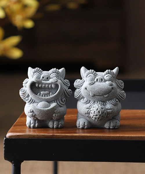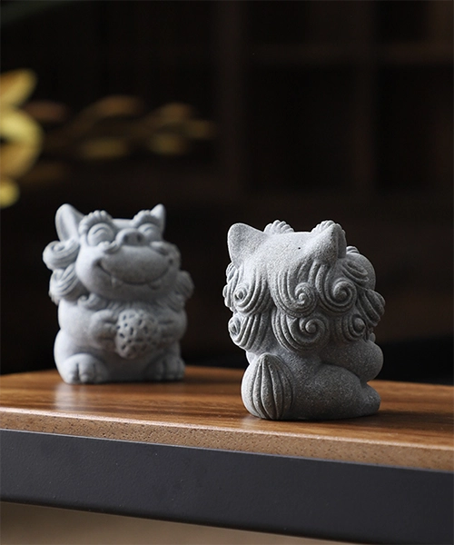 A Pair of Lion Sand Stone Ornament
