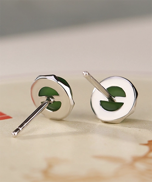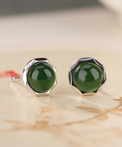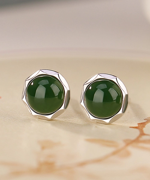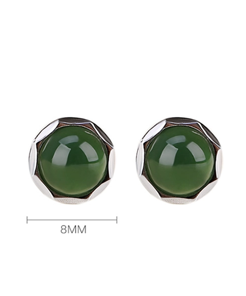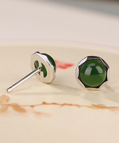 Green Jade Cabochon S925 Earrings
