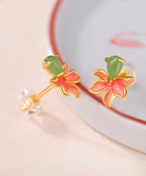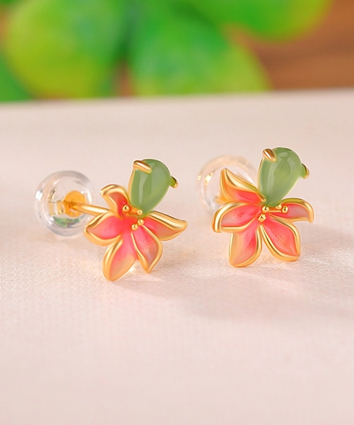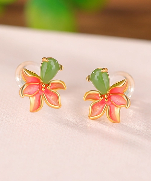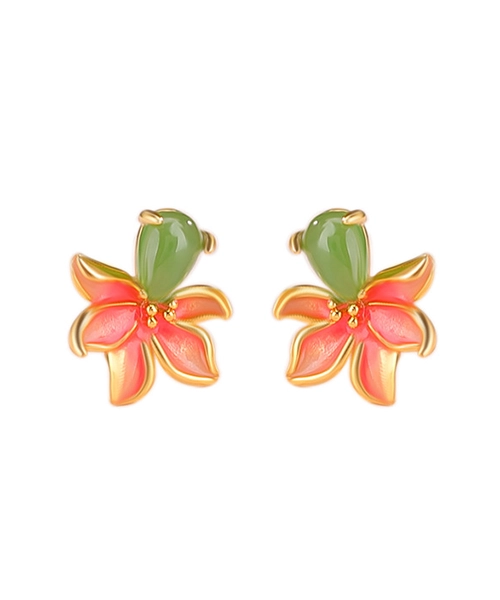 Peach Blossom Enamel Jade Earrings