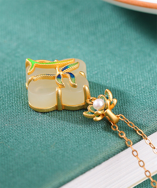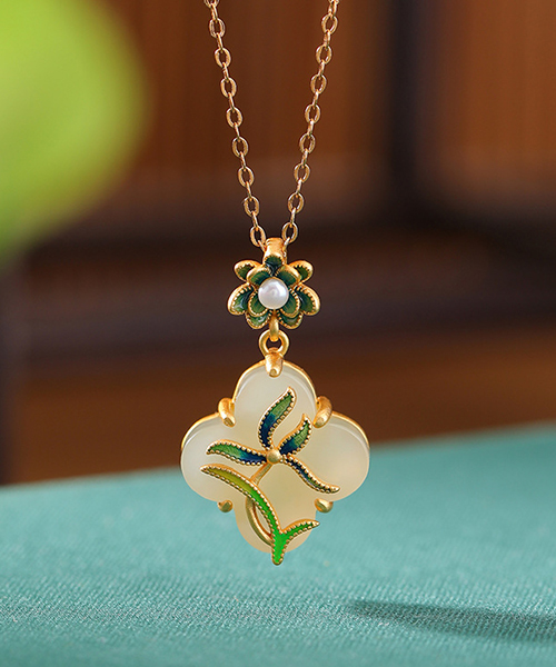 2 reviews for S925 Natural Jade Enamel Leaf Pattern Pendant Necklace