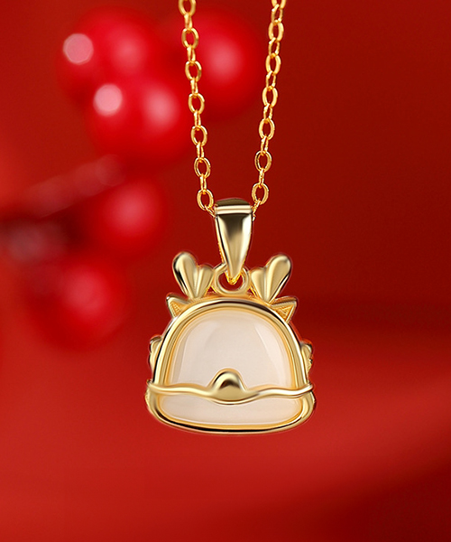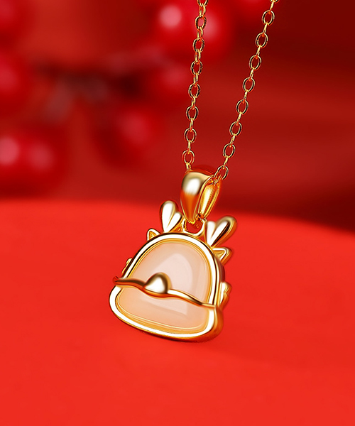 1 review for S925 Natural Jade Cute Dragon Gold Pendant Necklace