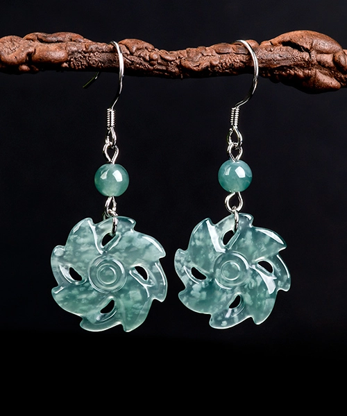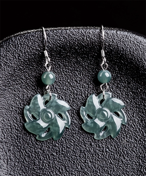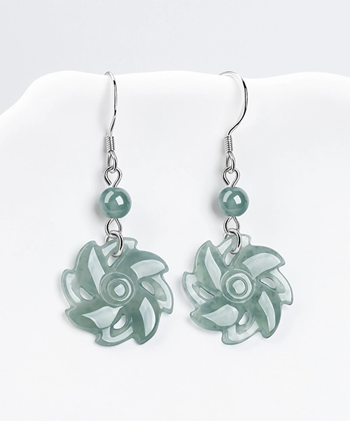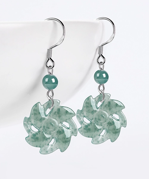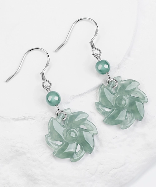 S925 Windmill Natural Jade Earrings